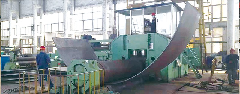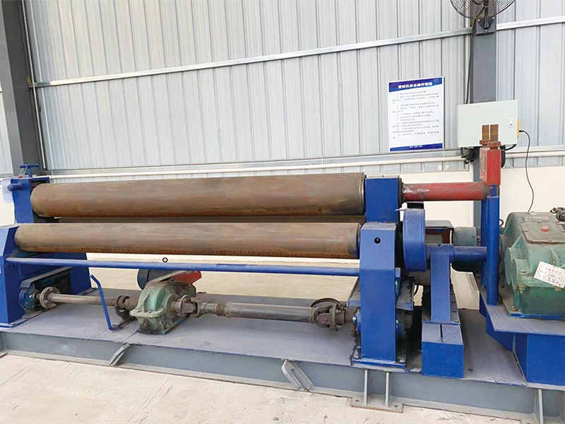 簡(jiǎn)析卷板機(jī)的工作原理及應(yīng)用范圍卷板機(jī)是對(duì)板料進(jìn)行連續(xù)點(diǎn)彎曲的塑形機(jī)床,具有卷制O 同的形狀卷板機(jī)規(guī)格平整的塑性金屬板通過(guò)卷板機(jī)的三根工作輥(二根下輥、一根上輥) 之間,借助上輥的下壓及下輥的旋轉(zhuǎn)運(yùn)動(dòng),使金屬板經(jīng)過(guò)多道次連續(xù)彎曲(內(nèi)層 壓縮變形,中層不變,外層拉伸變形),產(chǎn)生塑性變形,卷制成所需要 的圓筒、錐筒或它們的一部分。 卷板機(jī)的工作原理是卷板機(jī)上輥在兩下輥中央對(duì)稱位置通過(guò)液壓缸內(nèi)的液壓油作用于活塞作垂直升降運(yùn)動(dòng),通過(guò)主減速機(jī)的末級(jí)齒輪帶動(dòng)兩下輥齒輪嚙合作旋轉(zhuǎn) 運(yùn)動(dòng),為卷制板材提供扭矩。借助上輥的下壓及下輥的旋轉(zhuǎn)運(yùn)動(dòng),使金屬板經(jīng)過(guò) 多道次連續(xù)彎曲,產(chǎn)生塑性變形,卷制成所需要的園筒、錐筒或它們的一部分。